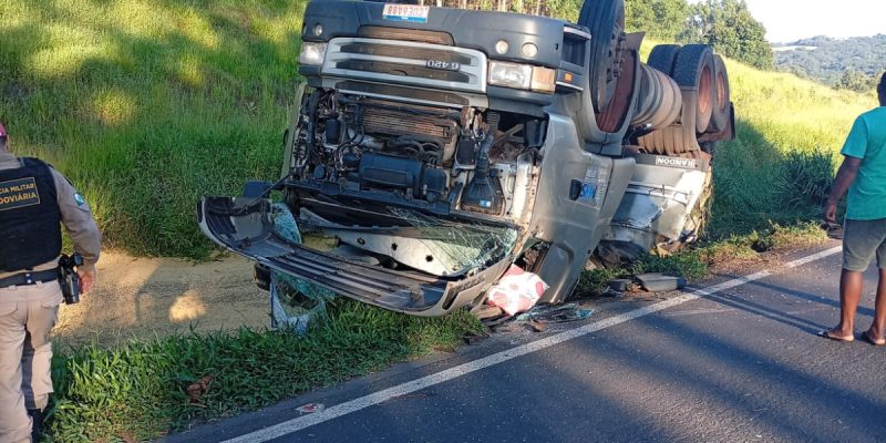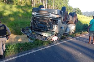 Caminhão tomba na PR-092 entre Arapoti e Jaguariaíva e motorista fica ferido