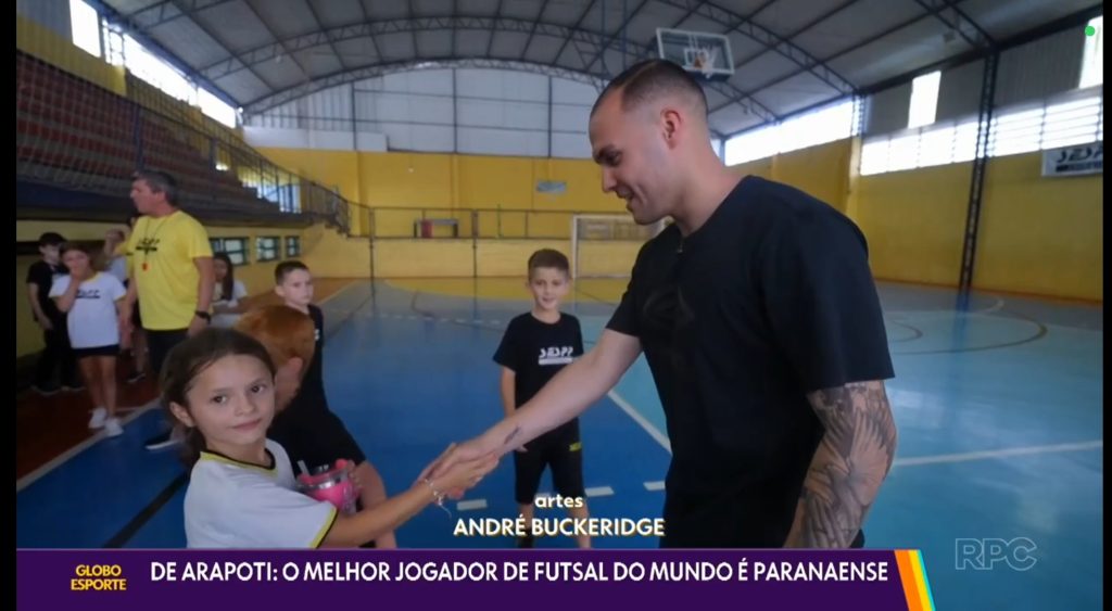 A reportagem relembrou o início da caminhada de Fabinho ainda em Arapoti, quando deu seus primeiros passos no futsal jogando nas quadras de sua antiga escola, o SESPP. Em um dos momentos mais emocionantes do vídeo, o atleta aparece visitando a instituição e conversando com alunos pequenos, reforçando o papel do esporte como ferramenta de inspiração e transformação.