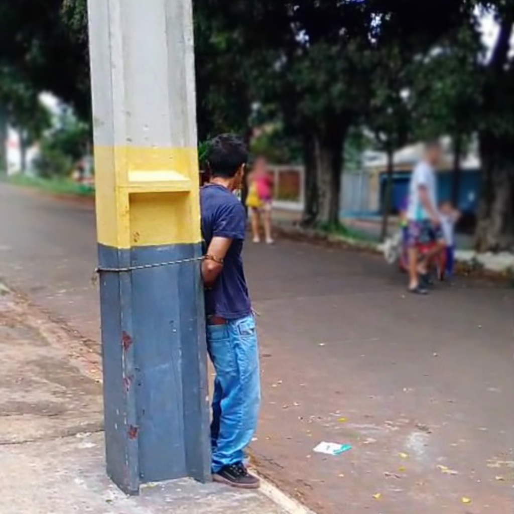 Arapoti – Uma cena inusitada chamou a atenção de moradores do bairro Jardim Ceres na manhã desta quinta-feira (12). Um homem foi amarrado a um poste na Rua Vicente Gabriel da Silva após supostamente ser flagrado tentando furtar um botijão de gás.