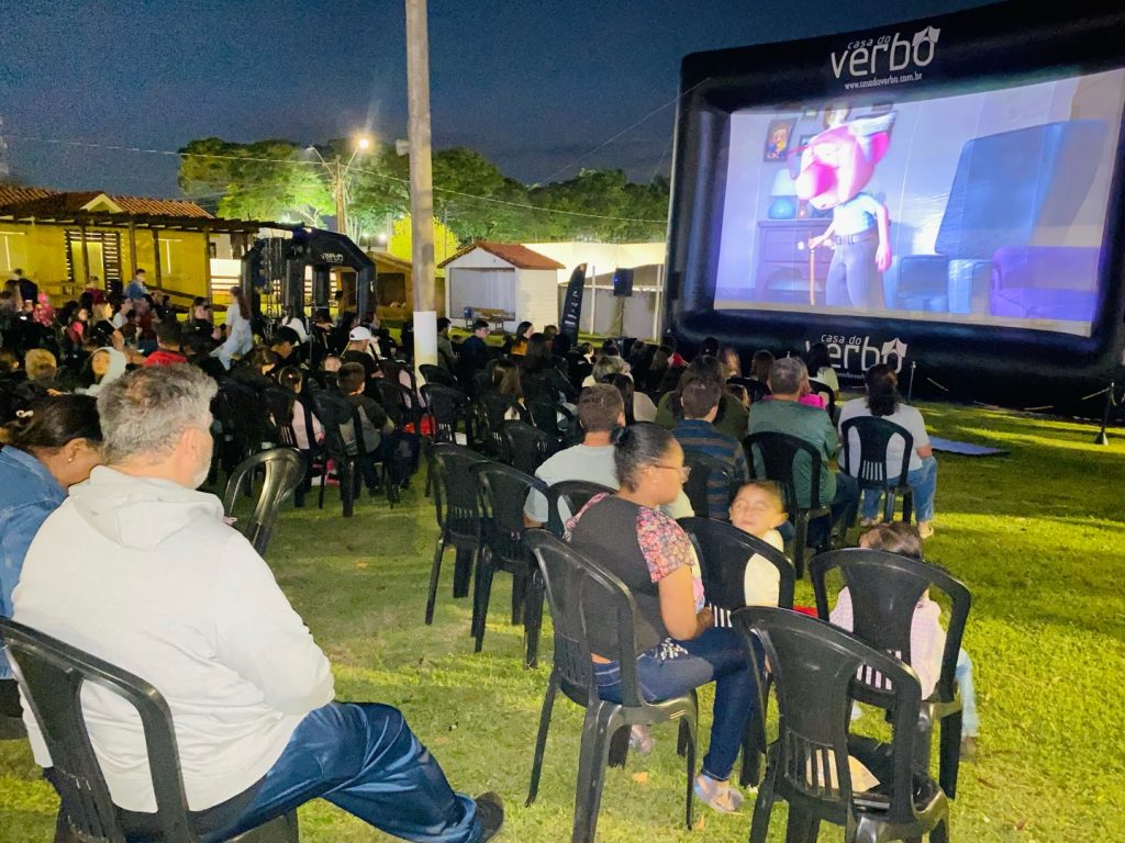Com entrada gratuita, o evento transformou o espaço público em uma grande sala de cinema ao ar livre, reunindo crianças, pais e amigos em uma programação pensada para toda a família.