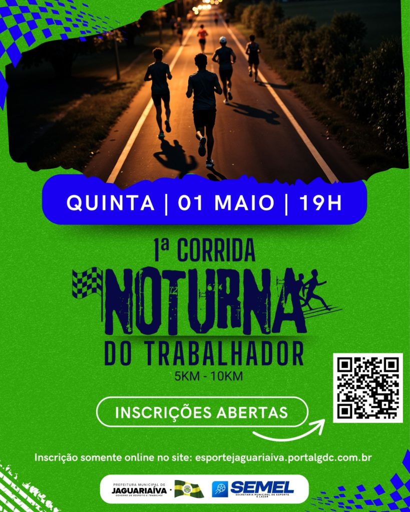 Jaguariaíva – A Secretaria Municipal de Esporte e Lazer, com o apoio da empresa BrasPine, e o objetivo de celebrar o Dia do Trabalhador, incentivando a prática esportiva, a saúde, bem-estar e qualidade de vida, abriu as inscrições para a 1ª Corrida Noturna do Trabalhador. O evento, que ocorre dia 1º de maio, às 19h, partindo da Estação Cidadã Agente Durvalino de Azevedo, no centro da cidade, é aberto à comunidade local e regional.