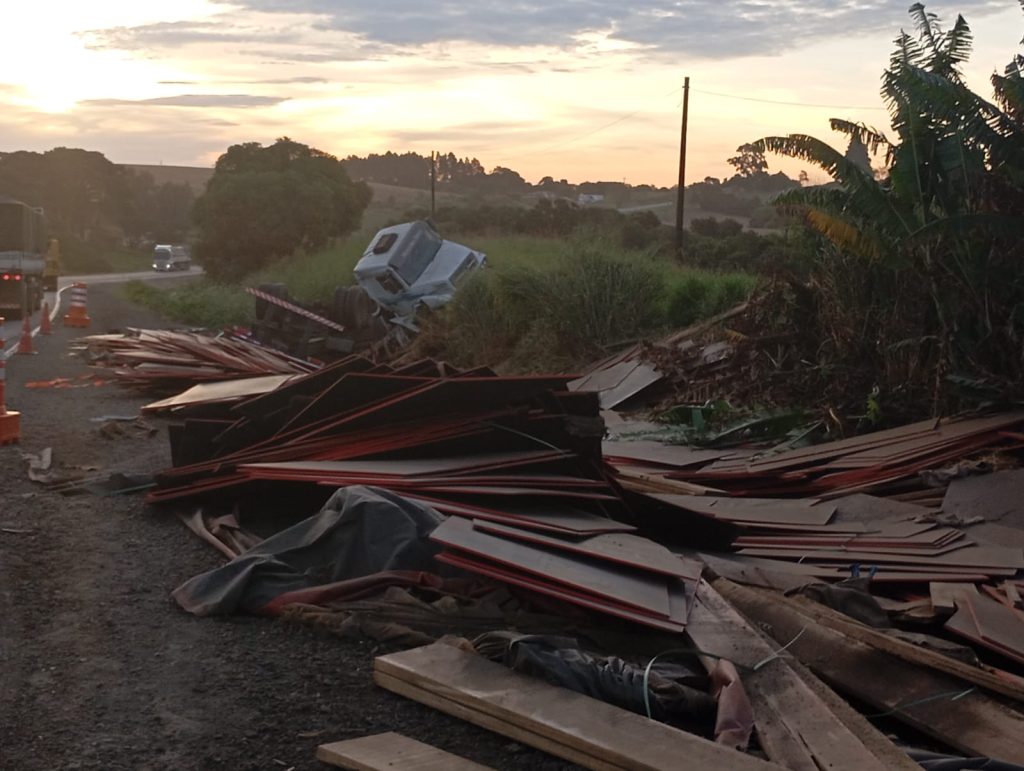 De acordo com relatório da 5ª Companhia do Batalhão de Polícia Rodoviária (BPRv), o veículo transportava MDF e madeira serrada e seguia no sentido Jaguariaíva-Arapoti quando o condutor, um homem de 30 anos, perdeu o controle da direção, saiu da pista e o semi-reboque veio a capotar.