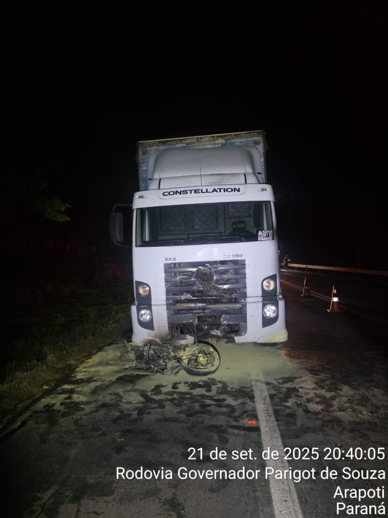 Arapoti – Um acidente registrado na noite deste domingo (21), por volta das 19h20, resultou na morte de um motociclista na rodovia PR-092, no trecho entre Arapoti e Calógeras.