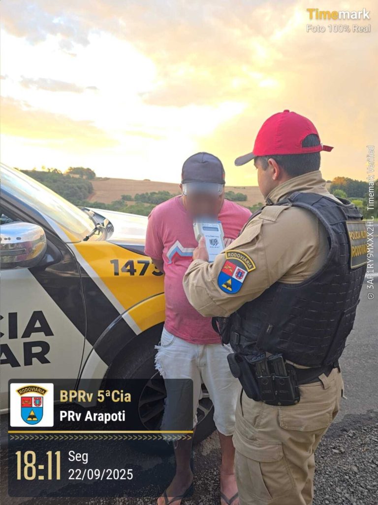 Arapoti – A Polícia Rodoviária Estadual (PRE) prendeu no início da noite de segunda-feira (22), um motorista de 39 anos por embriaguez ao volante na PR-092.