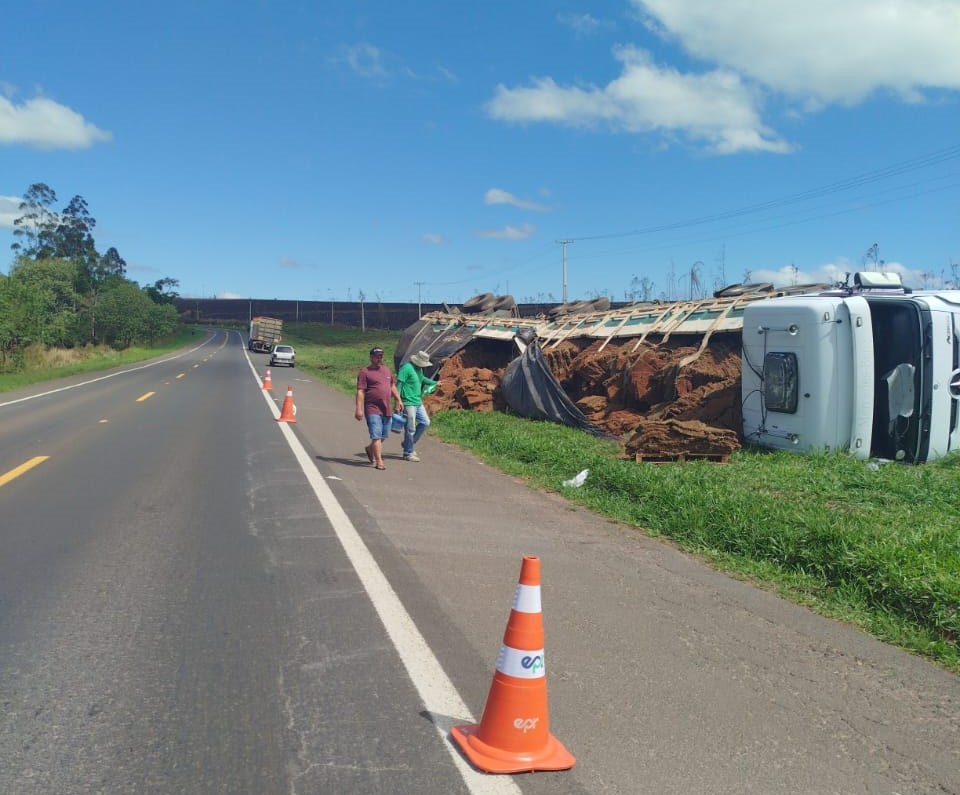 De acordo com informações da Polícia Rodoviária Estadual (PRE), o veículo — um conjunto formado por um caminhão Mercedes-Benz Actros e dois semirreboques Randon, todos emplacados em Jaguariaíva — seguia sentido Sengés–Jaguariaíva quando o motorista perdeu o controle e o conjunto acabou tombando às margens da pista.